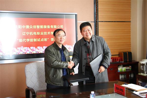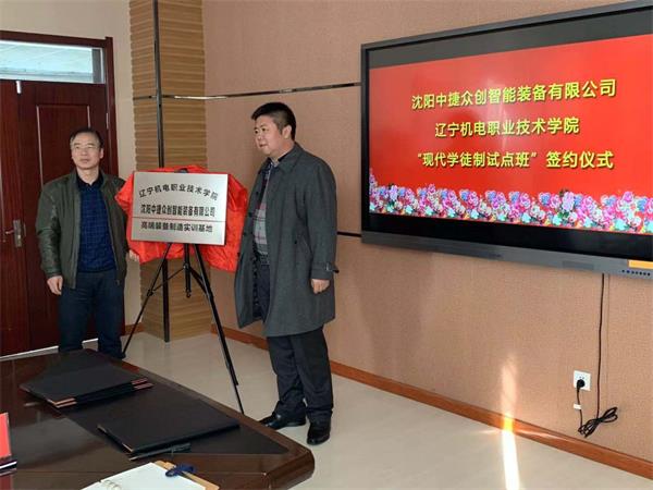本次签约仪式的成功举行,标志着校企双方进一步开展多层次、多形式、多领域的合作。沈阳中捷众创智能装备有限公司与机械工程系双方协商成立“现代学徒制试点班”,并冠名“中捷学徒班”,采用“1.5+1.5”培养模式,为提高“中捷学徒班”学生的实践能力,企业在学校建立高端装备制造实训基地,并捐赠2台机床主要零部件,用于开展真实的实践教学。企业在整个教学过程中聘请行业10名高级工程师、10名高级技师担任教师真正实现双优双课堂教学。此次校企合作实现校企资源的有机结合和优化配置,共同培养经济社会发展需要的人才提供了新的契机,扩大装备制造技术专业群“双高”建设的外延,夯实了基础。