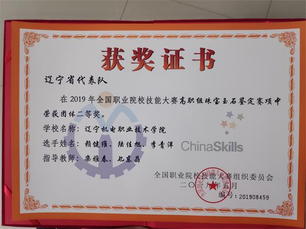 5月29日,由北方黄金珠宝学院栾雅春和乜东晶老师指导的陆佳旭、李青洋、赖健维在2019年全国职业院校技能大赛高职组“珠宝玉石鉴定”赛项中荣获二等奖。