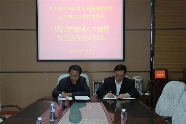 会谈结束后,学院副院长佟海军代表我院与大连松下汽车电子系统有限公司签订现代学徒制培养协议并在黄海汽车学院举行了首届现代学徒制“松下班”开班典礼。