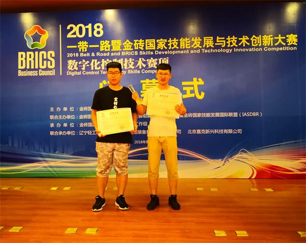 2018年8月16日,2018一带一路暨金砖国家技能发展与技术创新大赛数字化控制技术赛项于辽宁大连顺利闭幕,由自控系主任缴瑞山带队,教师许连阁、于晓云、郭海林指导学生金柜年、代宝钰组成的参赛队伍取得总冠军,荣获大赛一等奖。将代表中国参加南非赛区和俄罗斯赛区的该赛项金砖国家世界技能大赛。