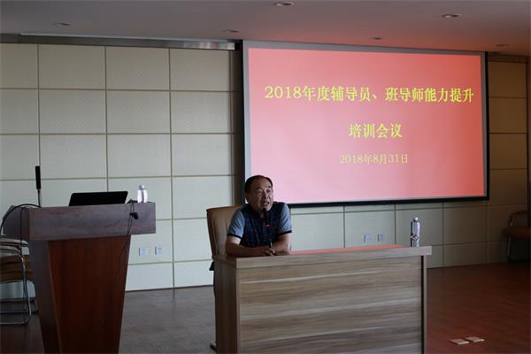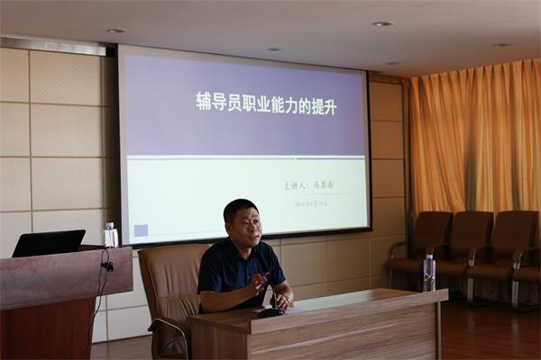 会议还特邀辽宁中医药大学马其南教授作了题为《辅导员职业能力的提升》专题培训。马其南教授紧紧围绕立德树人,从一名思政工作者要做知情者、伴随者、研究者和设计者为主线,结合日常管理工作,就如何做好大学生的服务、教育与管理工作作了深入浅出的讲解。