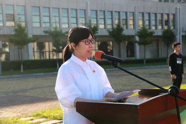 升旗仪式上,团委副书记韩丽娜对大一新生做了主题教育讲话,对2018级新生提出了殷切的希冀。希望同学们心存理想,敢于担当,努力在实现中华民族伟大复兴中国梦的生动实践中放飞青春梦想;希望同学们坚持学习,练就本领,既刻苦钻研理论知识又积极掌握技能,做到知行合一;希望同学们勇于创新,全面发展,不断增进创效、创业、创优的能力和本领,让工匠精神与创新精神同辉。