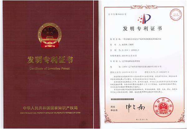 近日获悉,由我院机械系袁国伟老师申报的发明专利《一种压缩机自动化生产线的传送链条及其制备方法》已由国家知识产权局正式授权公布,这是我院持有的第2件职务发明专利。