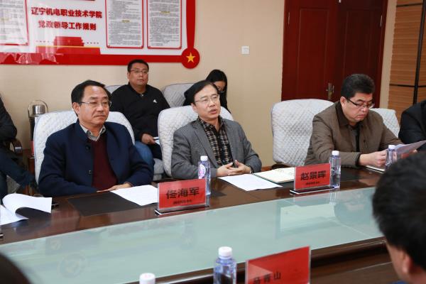 11月6日,北票市职教中心校长姚铁玉、副校长马青山、数控专业负责人李园、机电专业负责人刘玉玲、信息系主任刘凤霞、汽修系主任习雪松、办公室主任邵艳丽一行7人来我院考察交流。学院副院长赵景晖、佟海军,同我院党政办主任柴世强、招生办主任马生晓、培训处处长王立臣、自控系主任缴瑞山、机械系副主任李涛、信息系副主任姜东洋在行政中心902会议室参加座谈会议。