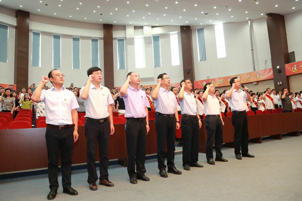 全院教职工在庄严的国旗下重温了教师誓词。大会要求全院教职工要牢记教师誓词,恪尽职守,敬业奉献,希望受表彰人员珍惜荣誉,发挥好示范引领作用,同时号召全院教职工以他们为榜样,坚守岗位,攻坚克难,当好学生的服务者和学院教育教学工作的实践者、推进者、改革者。