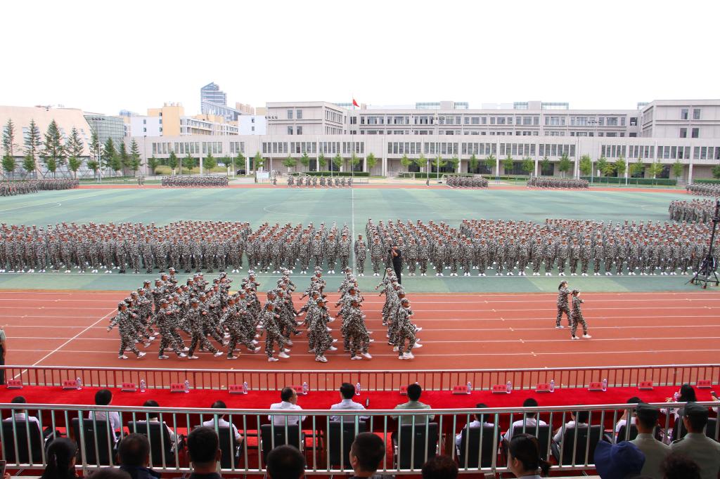 秋高气爽,丹桂飘香,9月12日上午10:00,我院2019级军训汇报表演暨2019—2020学年度开学典礼在仪表园校区体育场如期举行。65735部队管理科科长刘红喜,学院党委书记王忠诚,党委副书记、纪委书记陈秋鹏,副院长赵景晖,副院长佟海军,教务处长,学生处长,各院系党总支书记,教师代表及家长委员会副主任主席台就坐。全体辅导员、2019级新生班级全体班导师、家长委员会成员、各类先进代表以及2019级2900余名新生参加此次大会。