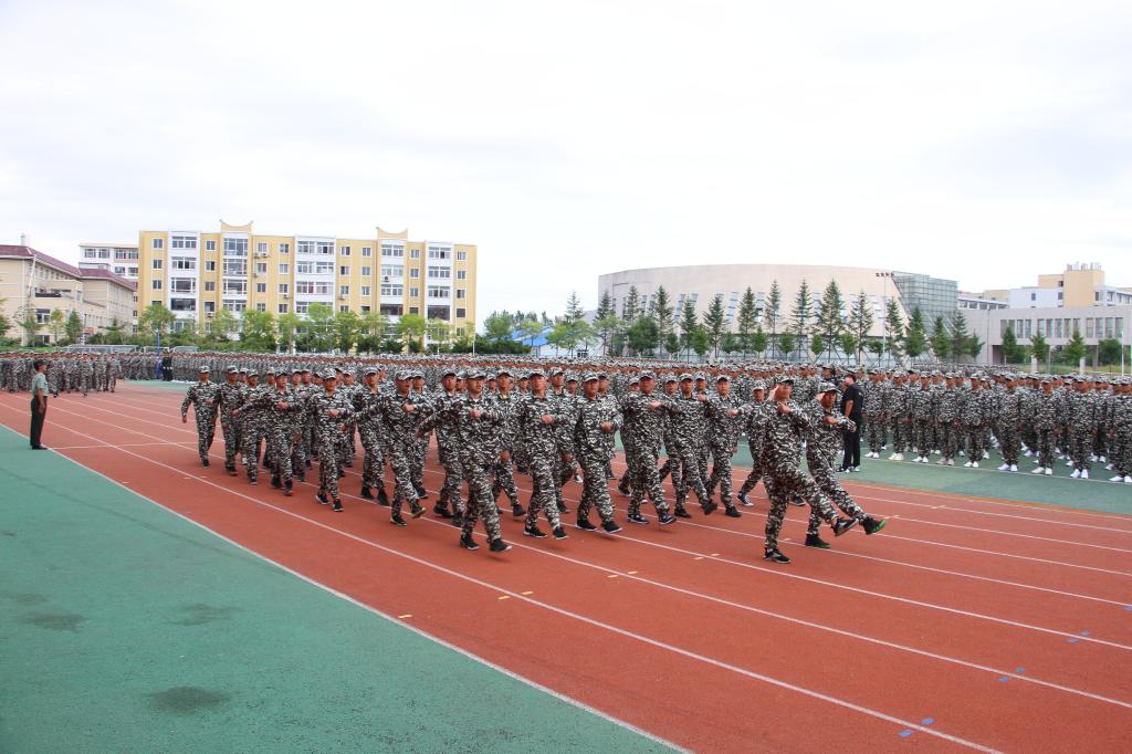军训汇报表演由学生处处长吴志丹主持。军训汇报表演在庄严的国歌中拉开了序幕,伴随着雄壮的乐曲,2900余名新生,30个方阵,迈着整齐的步伐依次经过主席台前,他们步伐坚定、队形整齐、口号嘹亮、自信昂扬,展现着十天以来的训练成果,也彰显了2019级新生艰苦训练的意志和青春蓬勃的朝气。接下来,学生处副处长西志玲公布2019级新生军训表奖名单并进行颁奖。颁奖结束,合成第191旅管理科科长刘红喜讲话,他在讲话中充分肯定了本次军训的成果,鼓励同学们继续开拓进取、勇于挑战,不断提升自身的综合素质,祝福大家在未来的学习和生活中取得更大的成绩,祝愿学校与部队携手共进、共创佳绩。最后,学院党委副书记、纪委书记陈秋鹏作了讲话,他首先对65735部队31名教官表示衷心的感谢,对2019级新同学表达殷切的希望,希望同学们以军训为契机,秉承“厚德 笃行”的校训,继续发扬“特别能吃苦、特别能奉献、特别能战斗、特别能创新”的学院精神,投入到今后的学习和生活中去,刻苦学习,勇于探索,积极实践,努力掌握现代科学文化知识和专业技能,使自己成为中国特色社会主义事业的合格建设者和可靠接班人。