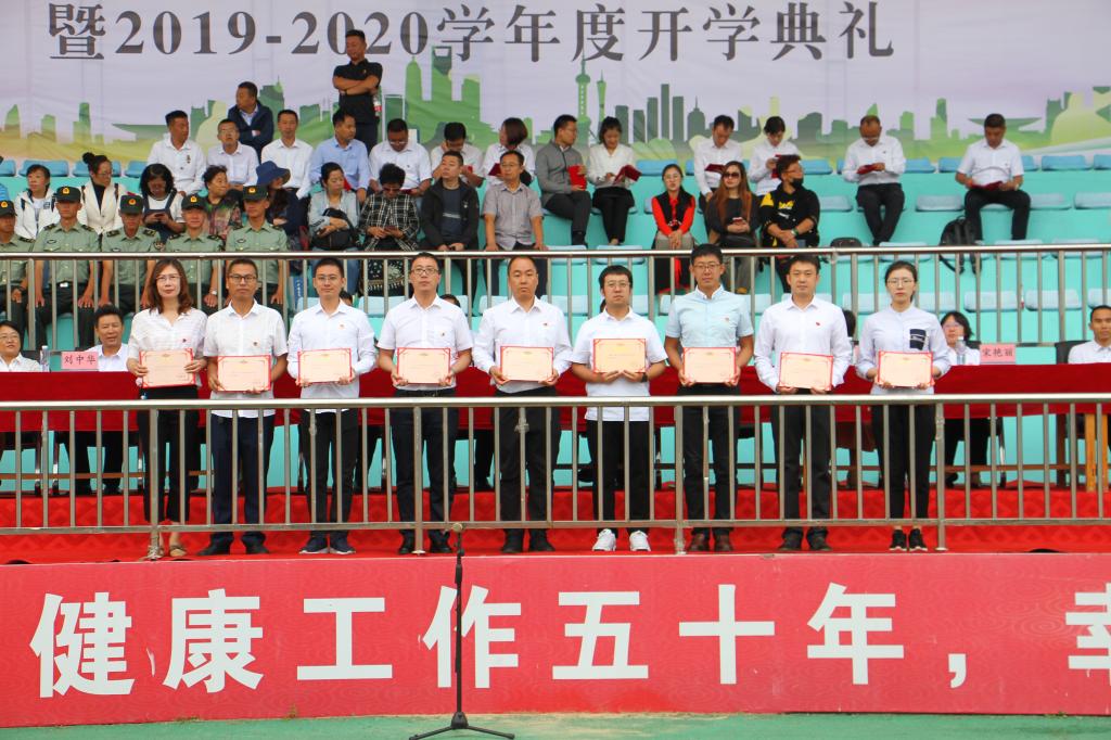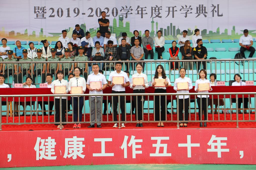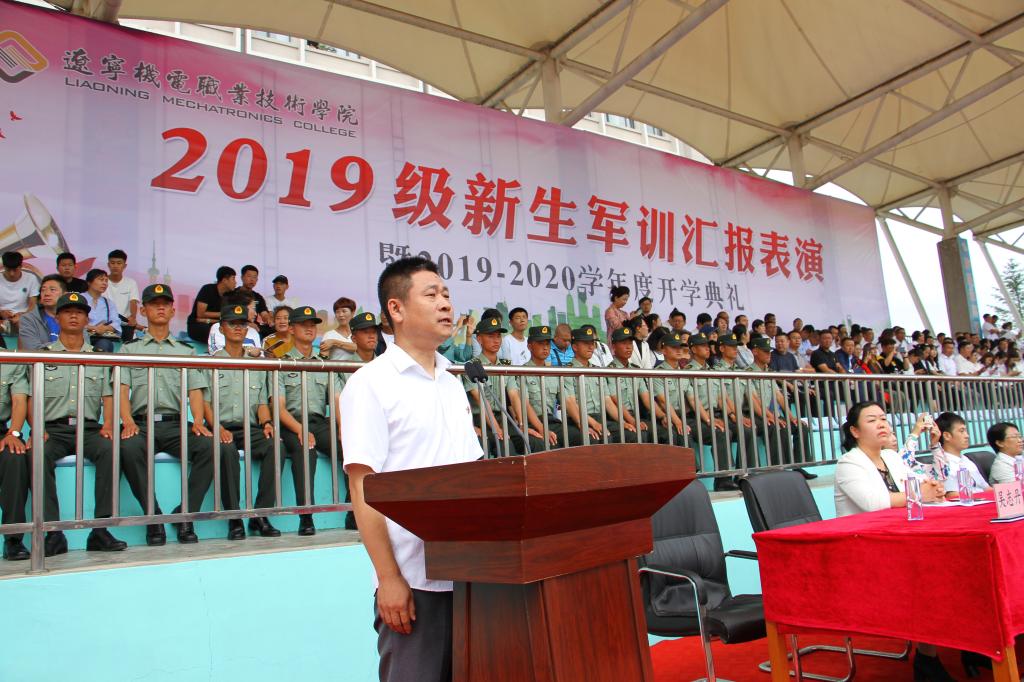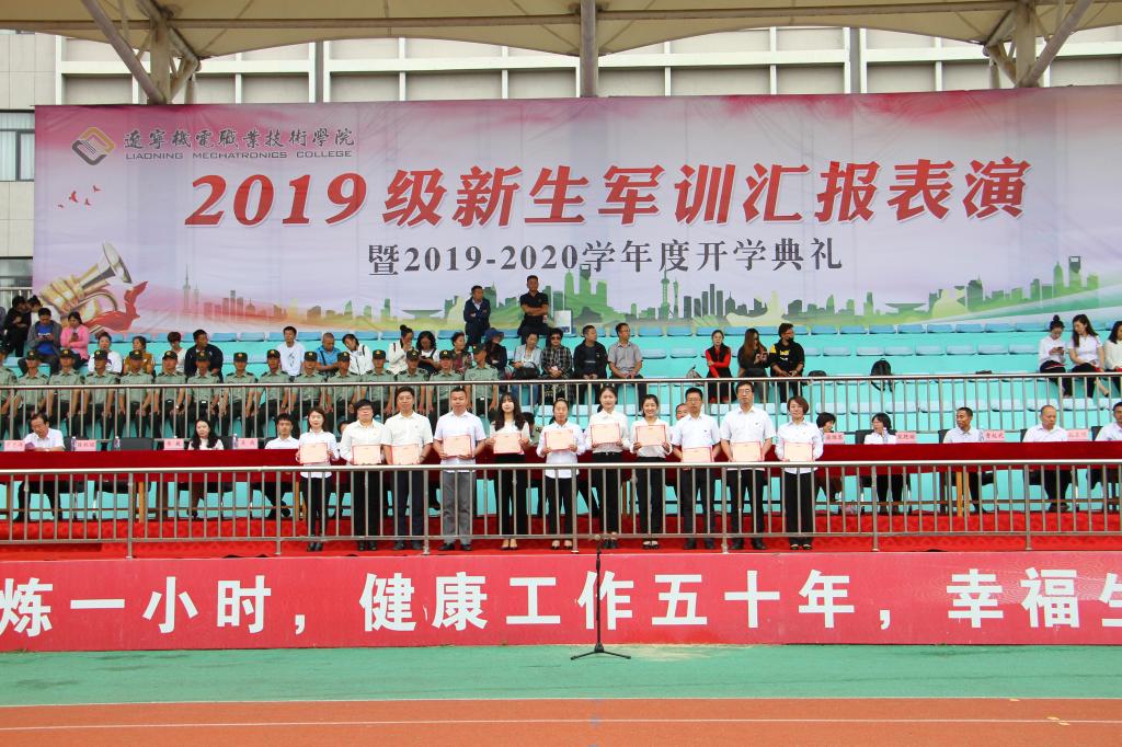 军训汇报表演后,隆重举行了2019—2020学年度开学典礼。开学典礼由学院副院长赵景晖主持。会上,教师代表北方黄金珠宝学院候秋琚老师、在校生代表北方黄金珠宝学院李佳兴同学、新生代表黄海汽车工程学院朱霖同学、家长代表黄巍博士先后上台讲话、发言。学院党委副书记、纪委书记陈秋鹏公布2018-2019学年度优秀班导师并颁布荣誉证书;学生处处长吴志丹公布2019新生班级班导师名单,学院领导为84名班导师颁发了聘书。