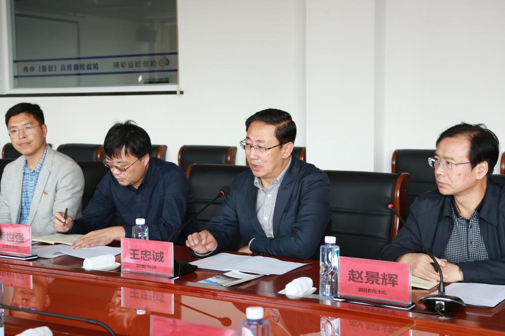 随后,在双创学院六楼会议室,举行了调研座谈会。党委书记王忠诚代表学院向市领导介绍了我院教育教学改革等方面所取得的成果。他以“立足辽宁服务发展,产教融合助力振兴教育”为主题,分别从学院概况、专业建设、学生就业、人才培养与引进、产教融合发展、下一步发展规划等方面进行了介绍。