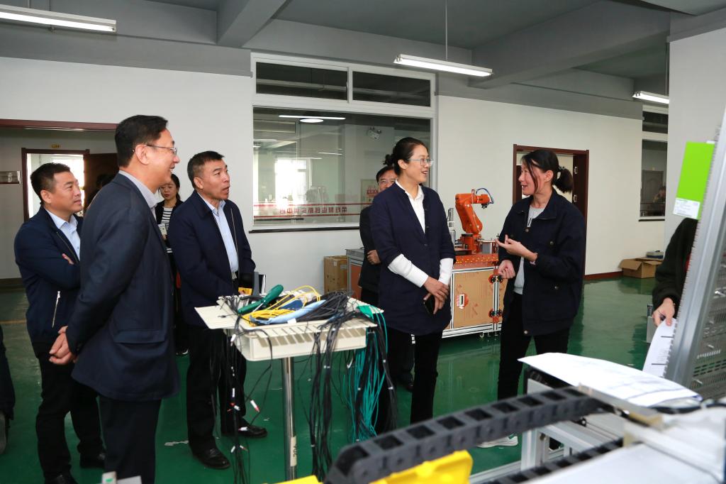 时燕副市长一行在我院党委书记王忠诚等领导陪同下,参观了校园环境、图书馆、学院智能制造生产性实训基地、创新创业学院、机器人创新实践中心、柔性制造创新实训中心,并与现场的师生进行了亲切交流。