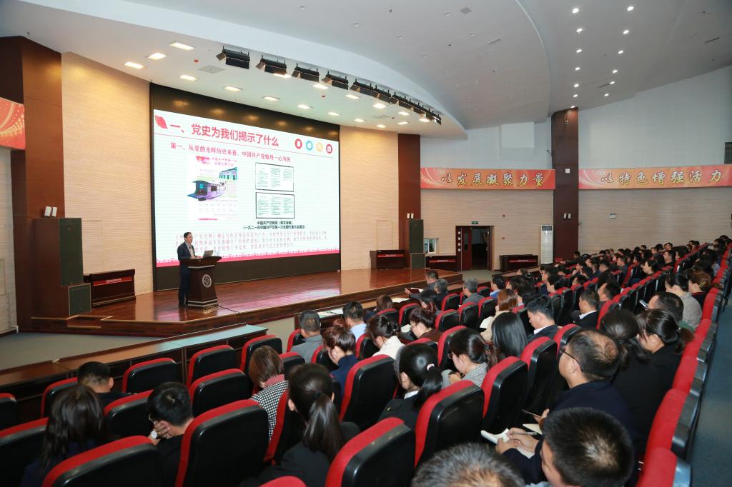 10月15日下午,党委书记王忠诚教授在学院大学生素质教育中心四楼报告厅为全体师生党员、三级岗以上人员做专题讲座,省委教育工委主题教育巡回指导组联络员金鑫现场观摩了党课。