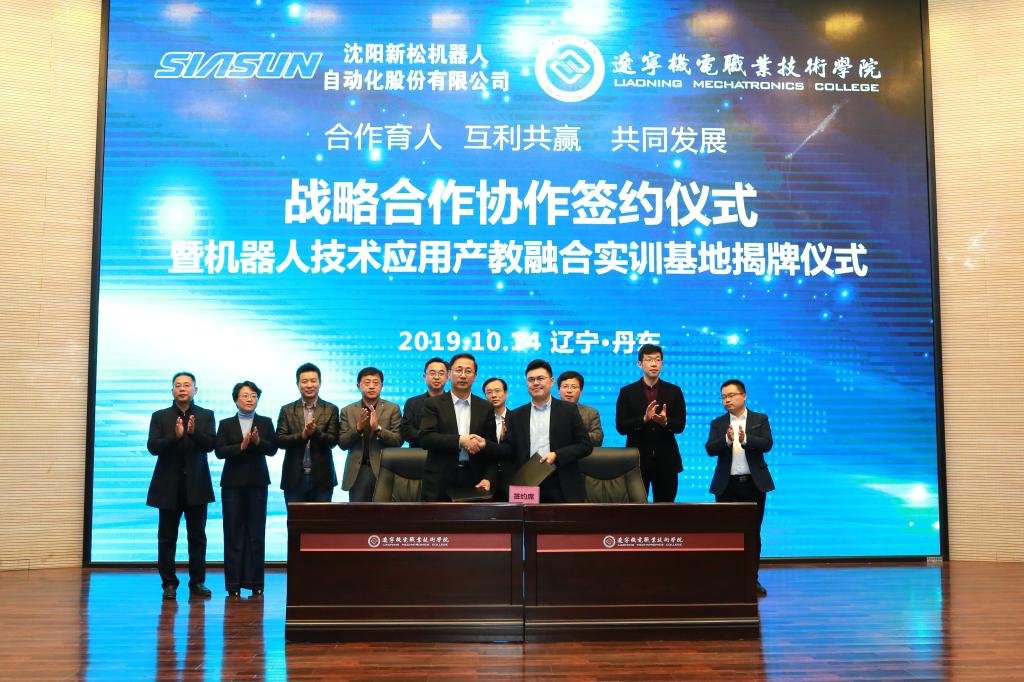 我院与沈阳新松签署战略合作协议是共同贯彻落实国家、省委省政府关于深化产教融合、校企合作的重大举措,一是为我院机电类专业的学生搭建了与企业交流、沟通平台,实现了学生的校企联合培养,共同制定人才培养计划,开发人才培养方案,改革传统校园就业模式,提高毕业生就业质量。二是共建机器人技术应用产教融合实训基地为其他企业相关岗位员工的培训和技能训练提供支撑,为机电相类关专业学生的认识、生产和顶岗实习以及机电类相关专业教师实践提供条件。三是共同搭建了“产学研”平台,企业为学校教师提供“双师型”教师实战技能培训,为双方人才互通提供了保障。