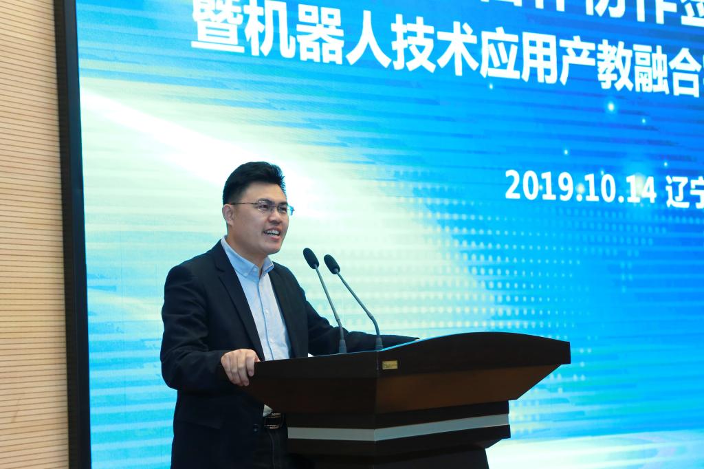 学院党委书记王忠诚教授在致辞中表示,新松公司是中国机器人领军企业,学院与新松公司确定战略合作关系,是校企双方贯彻落实国家关于深化产教融合、校企合作的重大举措,更是学院坚定前行在“区校企联动发展,产学研结合办学”特色发展之路上的又一重大里程碑。学院将以此次仪式为契机,与新松公司紧密合作,致力于在共建产教融合实训基地、人才培养基地和产学研平台等方面积极作为,促进校企双方在人才培养、技术应用、社会服务、产教融合等领域真正实现互惠互利、共同发展,为新松公司智慧发展、科学发展助力,为辽宁全面振兴、全方位振兴做出新贡献!