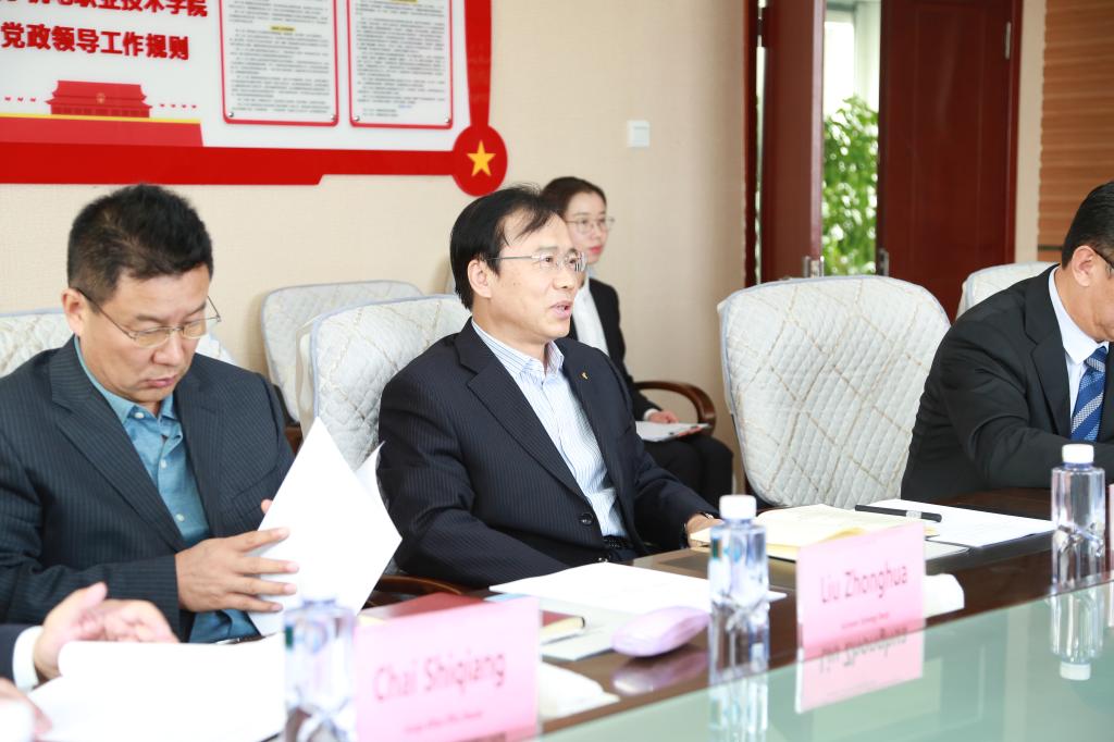 会前,党委书记王忠诚教授与柬埔寨贡布地区理工学院校长克容•金朗亲切会面,并陪同柬埔寨贡布地区理工学院及亚龙智能装备集团股份有限公司代表共同参观了学院校园环境、相关实训基地和实训室,使各位来宾和代表进一步了解了我院办学情况和专业实训基地的建设情况,为会议的顺利召开打下基础。