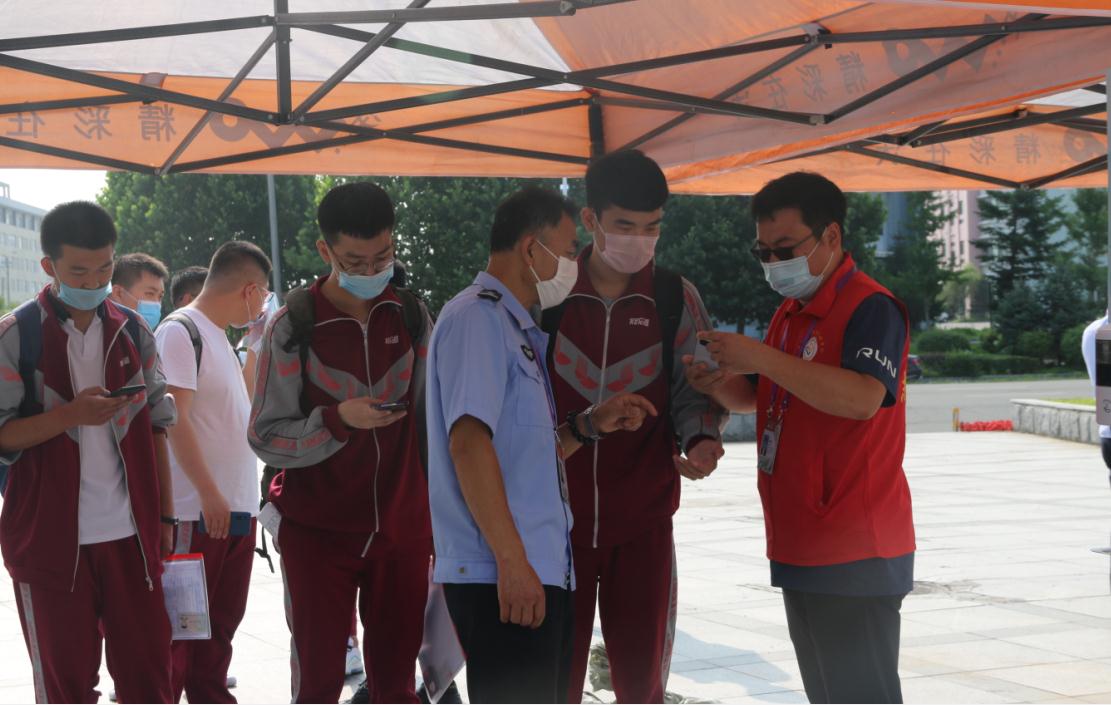 考试当天,为避免人群聚集,学院卫生所、保卫处和华孚仪表学院在校门口设置了疫情防控通道,进入校园的考生必须携带并出示身份证、准考证、健康码、体温登记报告和核酸检测报告。考生进入校园、进入考场严格测量体温,定点站位,间隔一米以上,由专人引导按照提前规划的路线进入考场,确保考生可以迅速有序进场、退场。