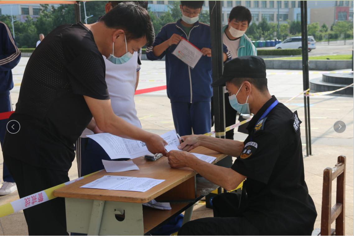 工作人员收取考生核酸检测报告