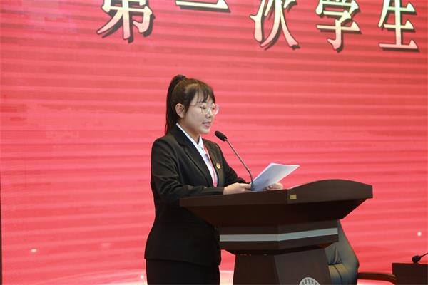 随后,李翠爽同学向大会作了题为《不忘初心 牢记使命 坚定信念 勇攀高峰 团结带领广大青年学生在实现中国梦的生动实践中谱写青春华章》的工作报告,全面回顾并总结了近几年学生会工作的开展情况,针对学生需求特点变化等学生会面临的新形势和新挑战,提出了未来的工作展望。代表们审议通过了第十九届学生会主席团候选人名单(草案)等一系列大会事宜。参会学生代表有序进行投票,选举出我院第十九届学生会主席团成员。最后,大会在师生共同唱响的校歌中圆满结束。