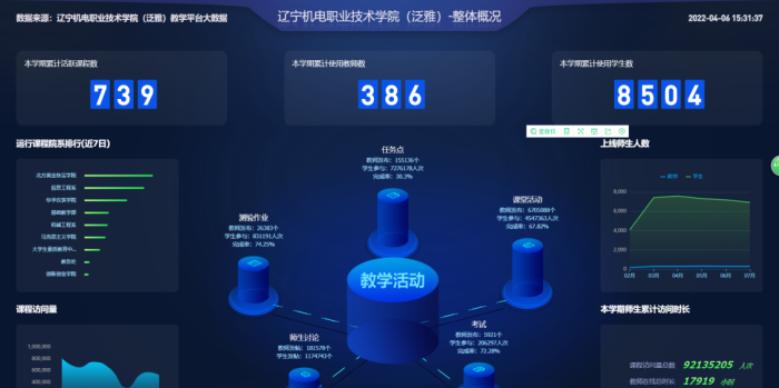此外,教务处联合教师发展中心及各教学部门,对全校12个教学部门的线上教学进行线上巡查及听课评课。重点了解各课程学习任务发布、资源建设、信息更新、教学组织与实施、师生互动等情况。各线上教学课程能顺利开展,教学资源建设较丰富,能正常开展作业布置、在线答疑和师生互动等活动,教师授课效果良好。